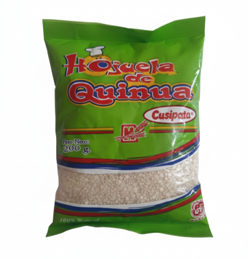Las Hojuelas de Quinua Cusipata son un alimento altamente nutritivo, elaborado a base de granos de quinua seleccionados y ligeramente cocidos y prensados para conservar todas sus propiedades. Ricas en proteínas, fibra y minerales, son ideales para un desayuno saludable, ya sea en leche, yogur, batidos o como complemento en repostería. Su sabor suave y natural las convierte en una excelente opción para toda la familia.